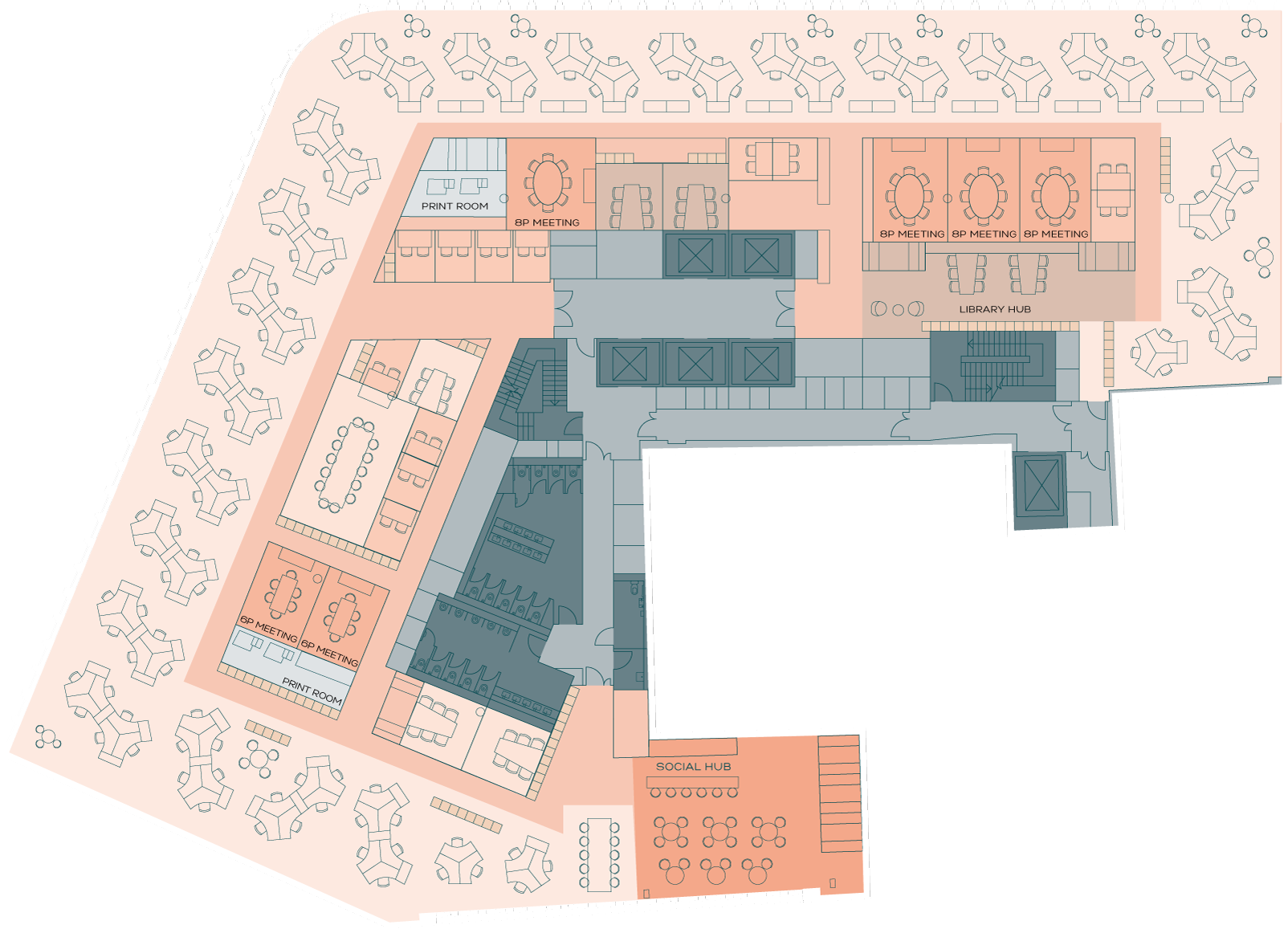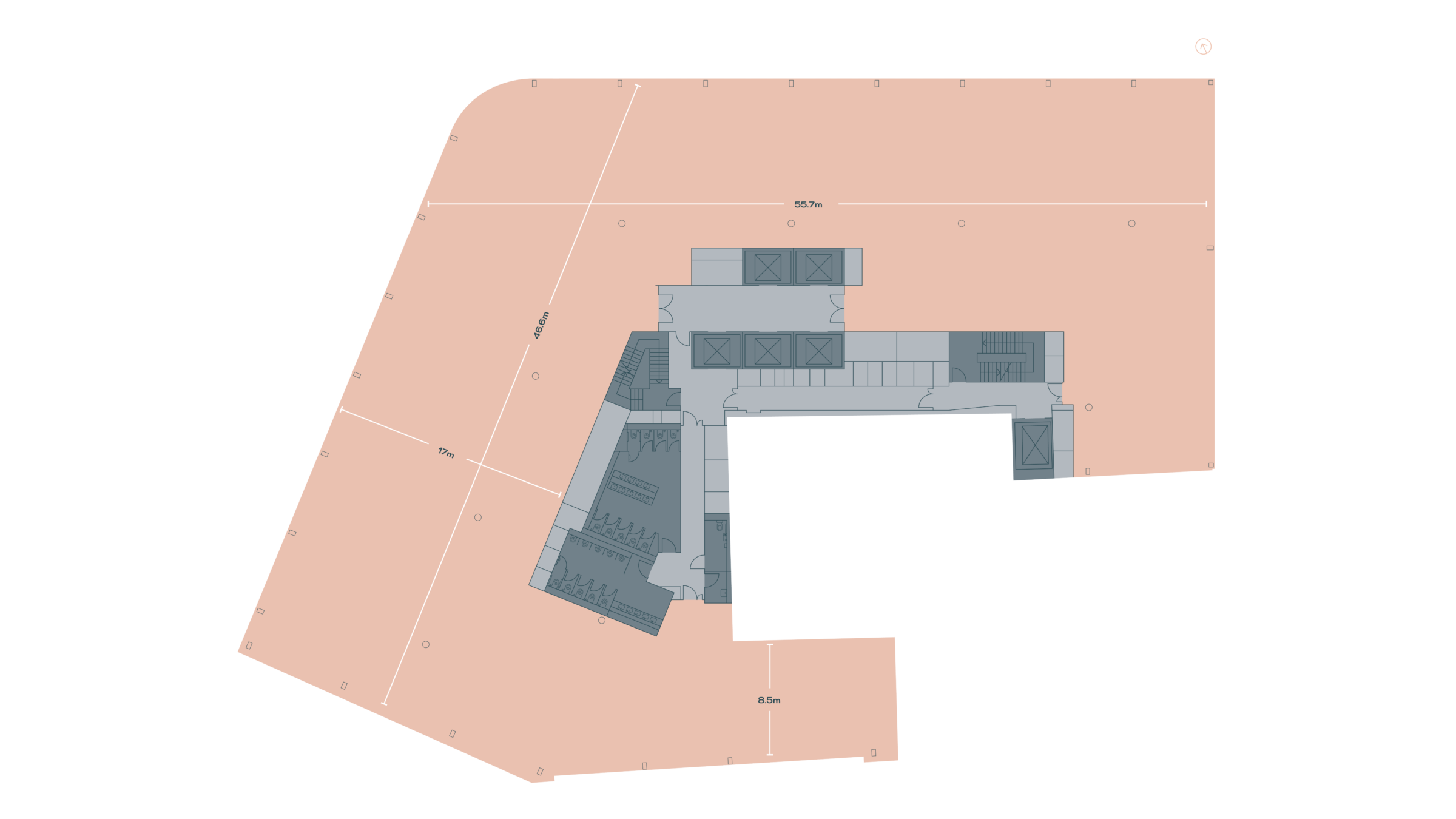 With generous floor-to-ceiling heights and spaces flooded with natural light, the floorplate provides outstanding flexibility.